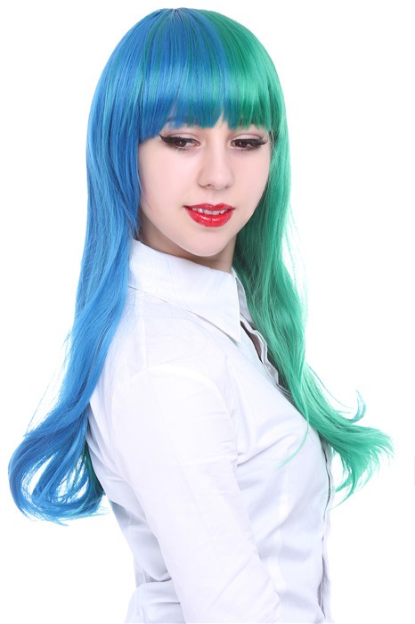 Home Perruques Cosplay 60 cm de long mixte couleur bleue et verte cosplay perruque CW00423