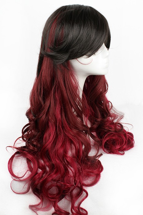 Home Perruques Cosplay 70cm Charme Mode gothique classique Harajuku Mix Black Wine cosplay perruque CW00151