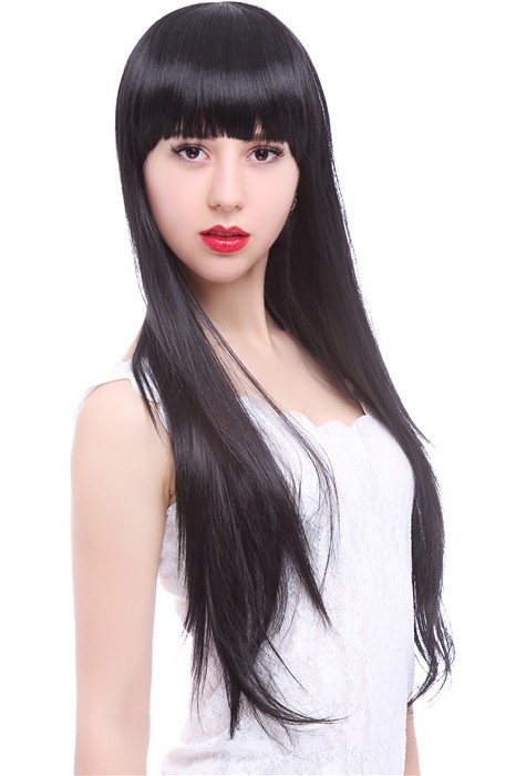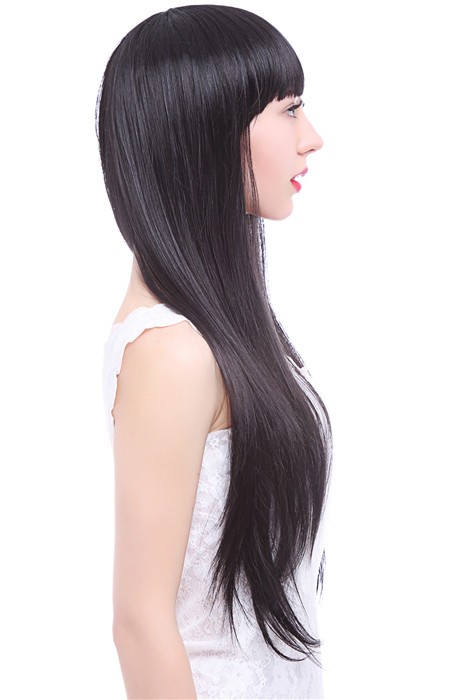 Caractéristiques: Cette femme de mode wigis de couleur noire et il semble aussi naturel que la perruque de cheveux raides de real.Wearing avec une frange soignée, vous pouvez être plus youthfuland élégant.