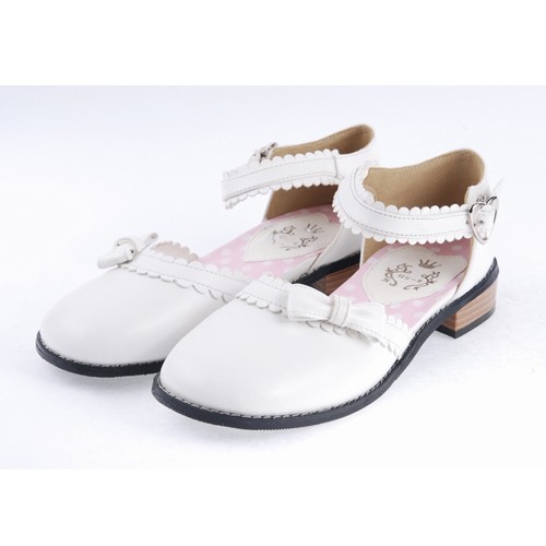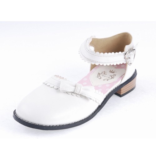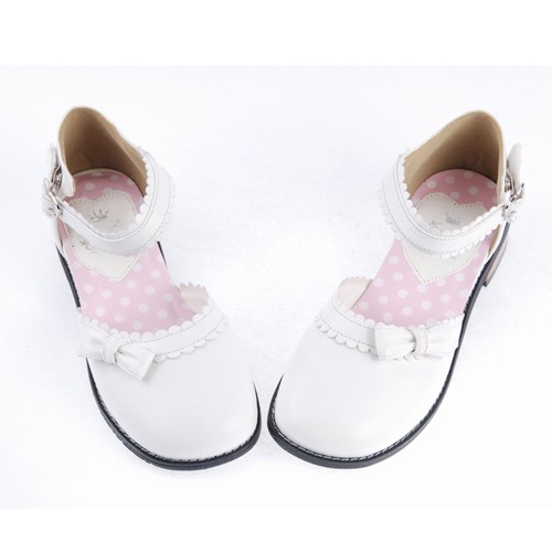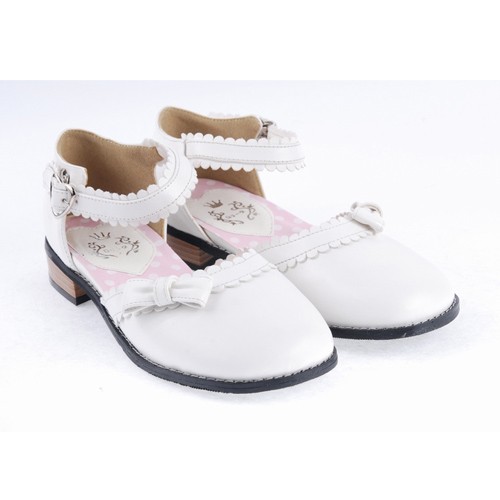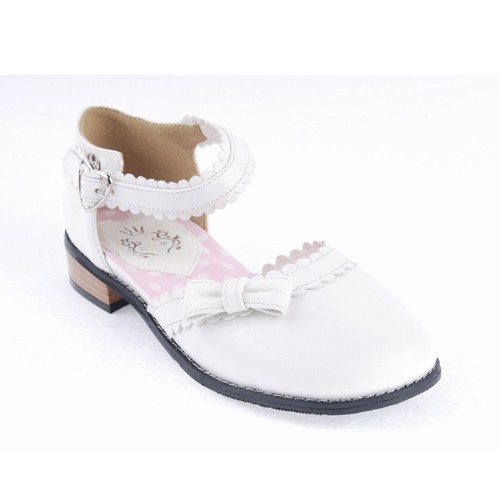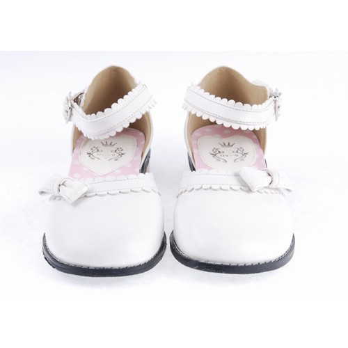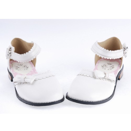 Home Lolita Lolita Footwear Blanc 1″ talon haut classique PU bout rond cheville bretelles bowknot Plateforme Filles Chaussures Lolita LF0036