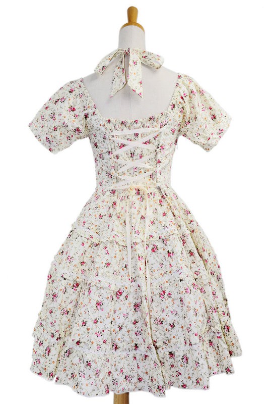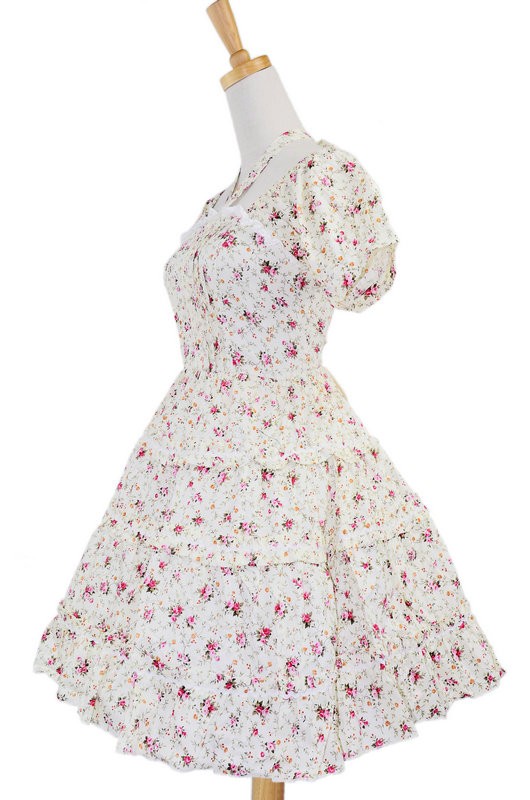 Blanc 100% Coton Floral Bow Sash Mignon Robe Lolita