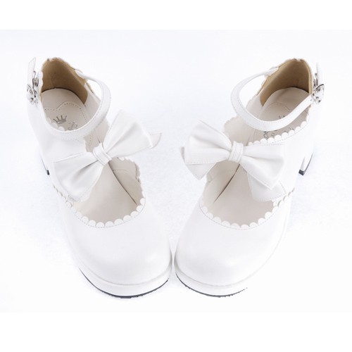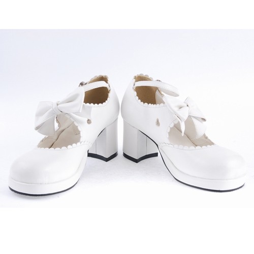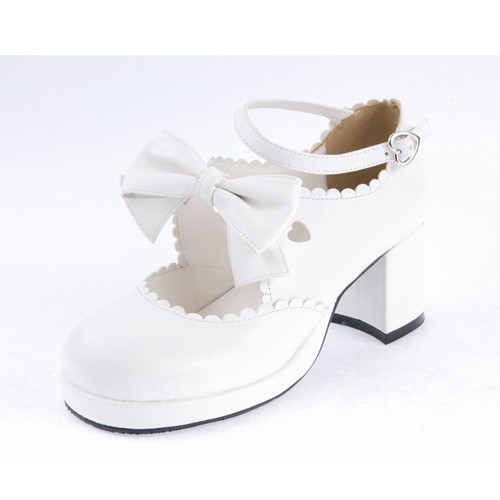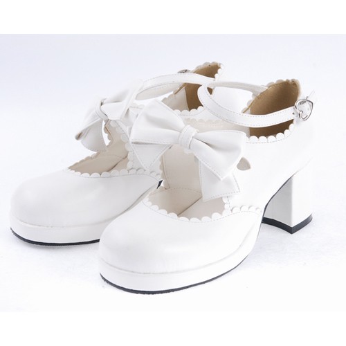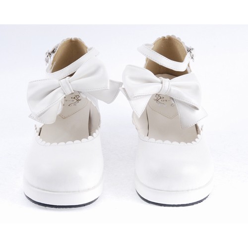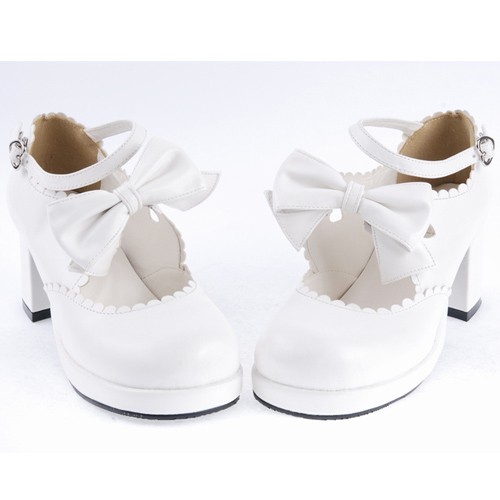 Blanc 2.6″Talon haut Belle PU bout rond cheville bretelles Bow Décoration Plateforme Filles Chaussures Lolita