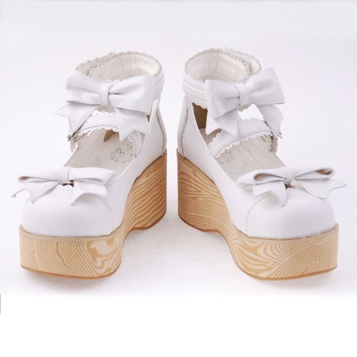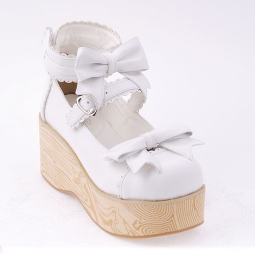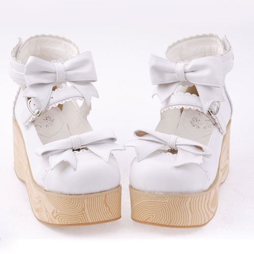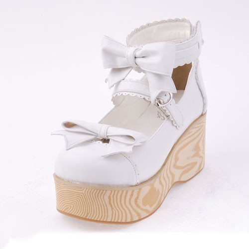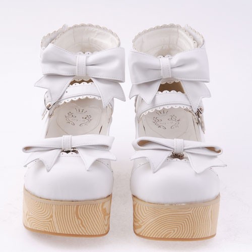 Blanc 2,7″ heel spécial en cuir verni bout rond Bow Décoration Plateforme Femmes Chaussures Lolita LF00275