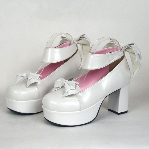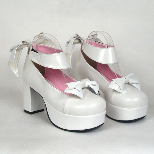 Home Lolita Lolita Footwear Blanc 3.1″ talon haut Adorable Suede bout rond lanières croisées Plateforme Femmes Chaussures Lolita LF00190