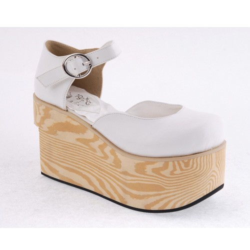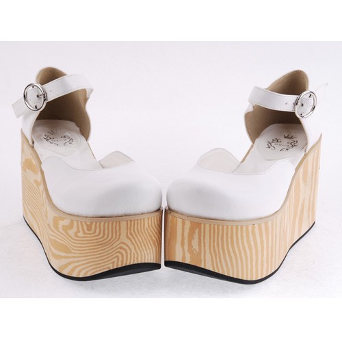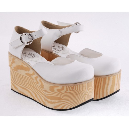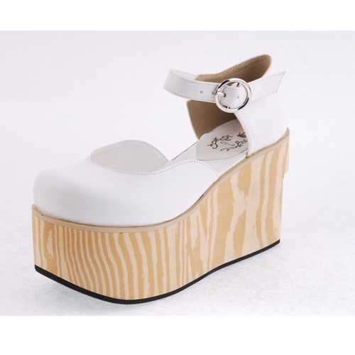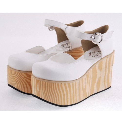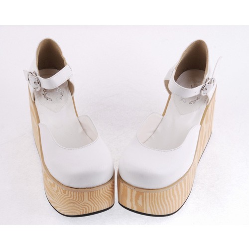 Blanc 3,7″heel Belle PU bout rond lanières croisées Plateforme filles Chaussures Lolita