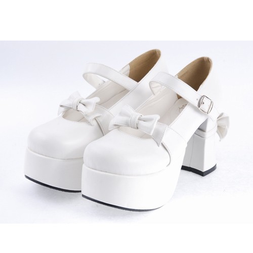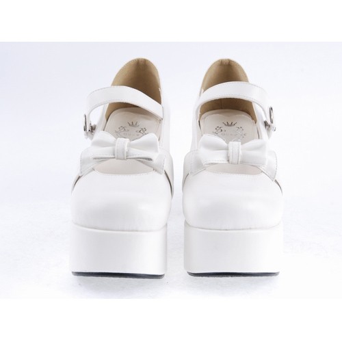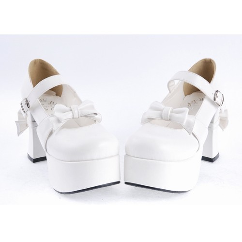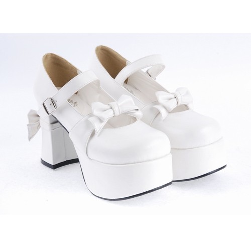 Blanc 3,7″haut talon rond adorable en cuir verni Toe Bracelet bowknot plate Filles Chaussures Lolita