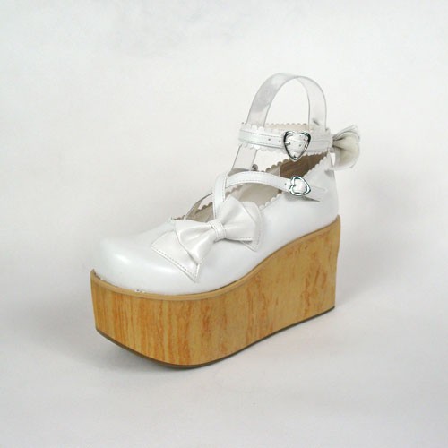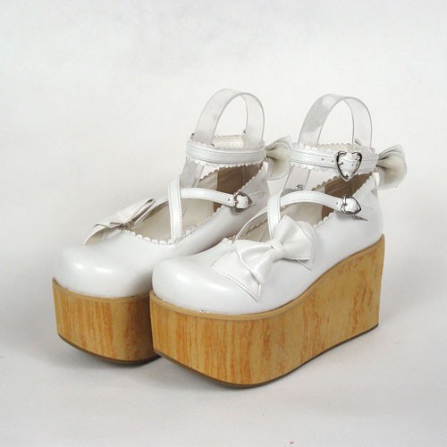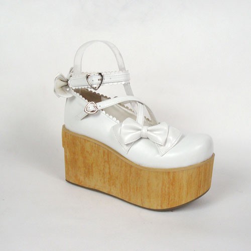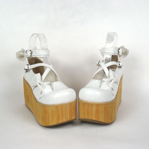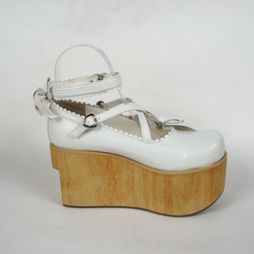 Blanc 3.9 heel Belle ronde Suede Toe Cross bretelles plate-forme Lady Lolita