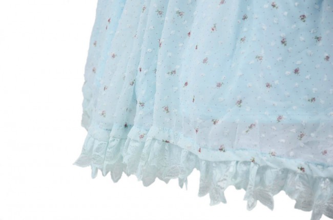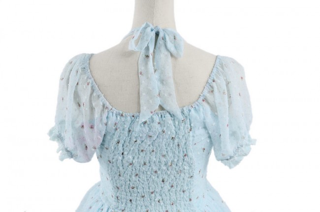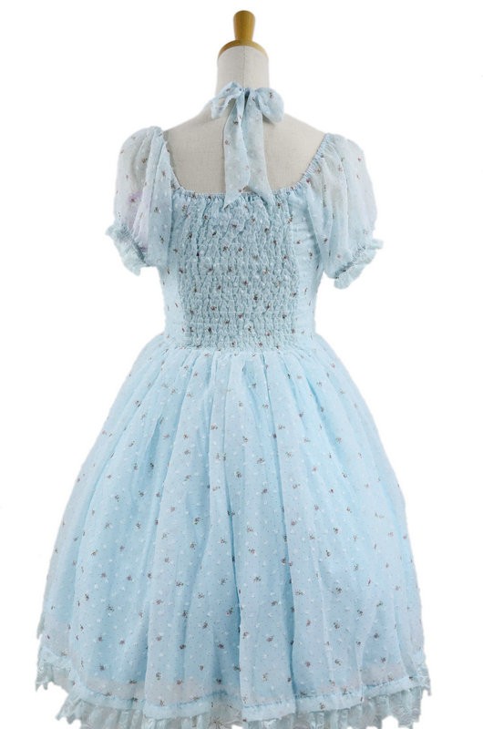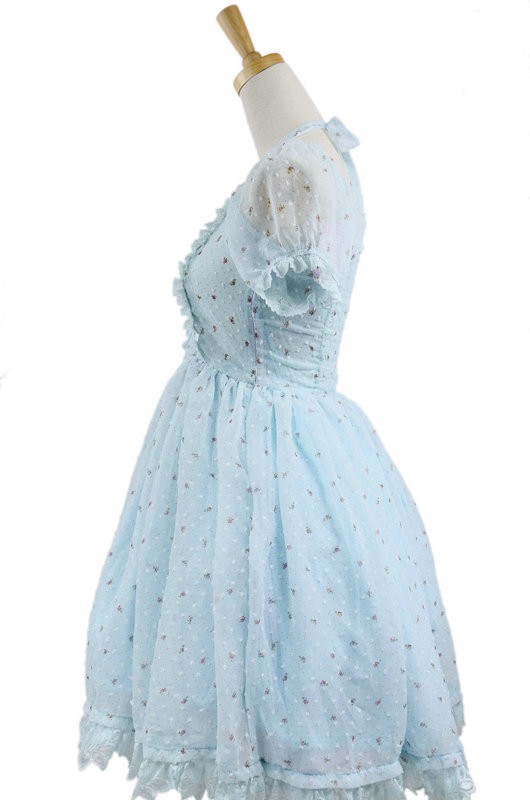 Bleu jacquard en mousseline de soie Bow manches courtes Sweet Lolita