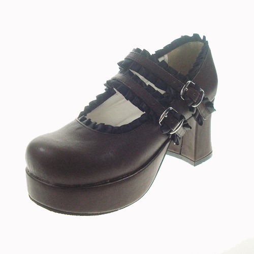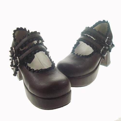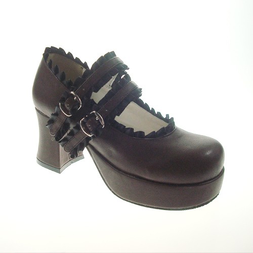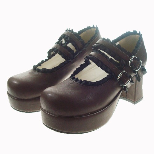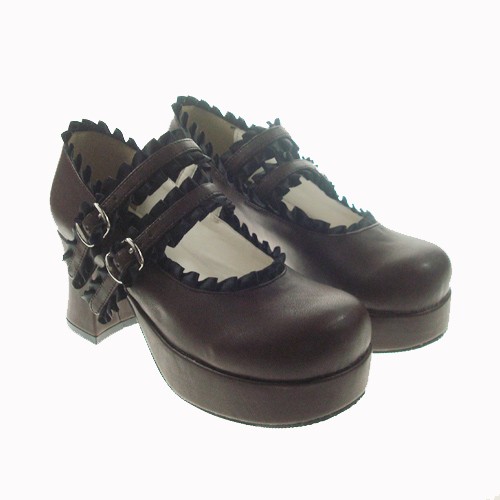 Brown 2.9″heel classique en polyuréthane bout rond lanières croisées plate-forme Lady Lolita