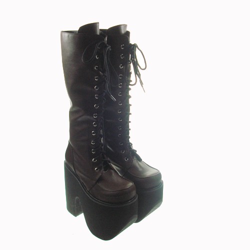 Home Lolita Lolita Footwear Brown 6.0″ talon haut mignon ronde polyuréthane Toe lanières croisées Plateforme filles Bottes Lolita LF00247