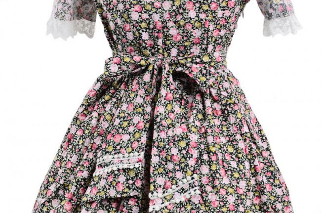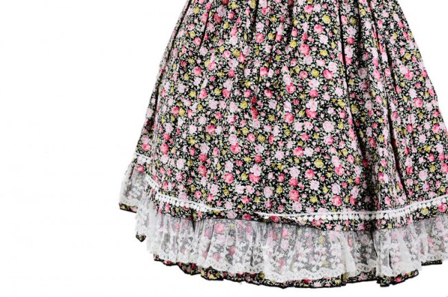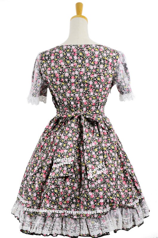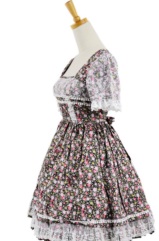 Doux coloré 100% coton dentelle florale robe à manches courtes Lolita