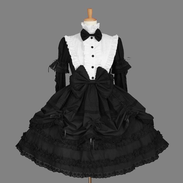 Ce noir et blanc à manches longues robe lolita gothique élégant a totalement amélioré, design élégant et gracieux et le style. Vous le trouverez grand pour la réception, douches, simple soirée dansante, partie de pendaison de crémaillère, ainsi que des parties de casting.