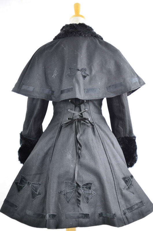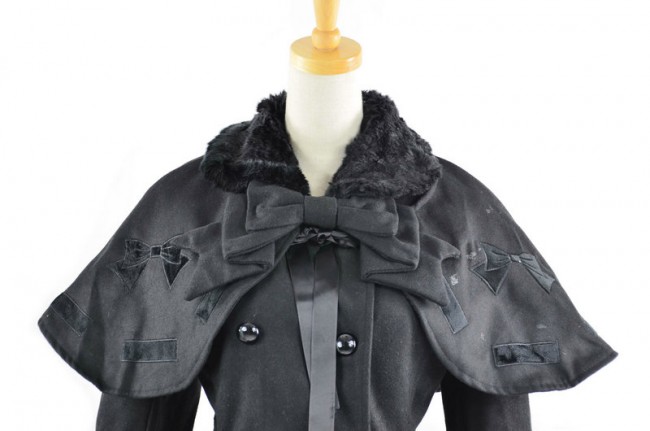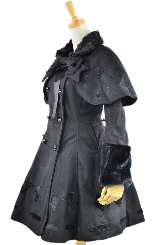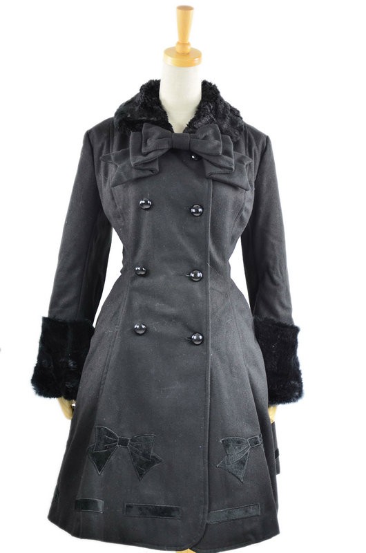 Manches longues noir Bow modèle Flanelle Gothic Lolita Coat