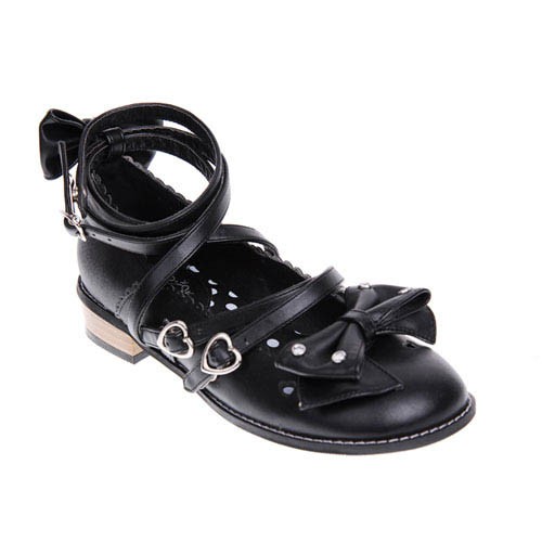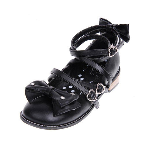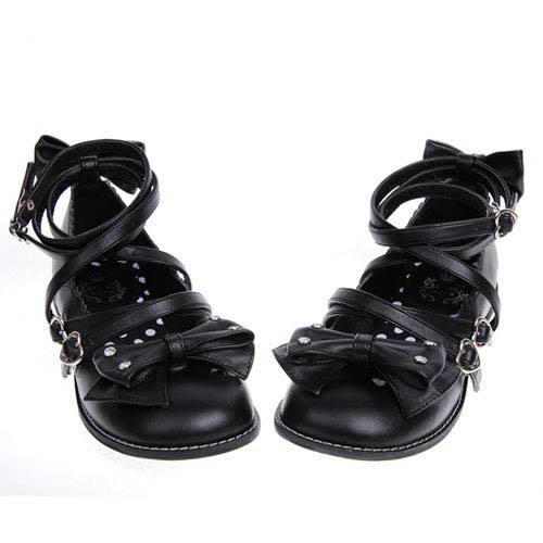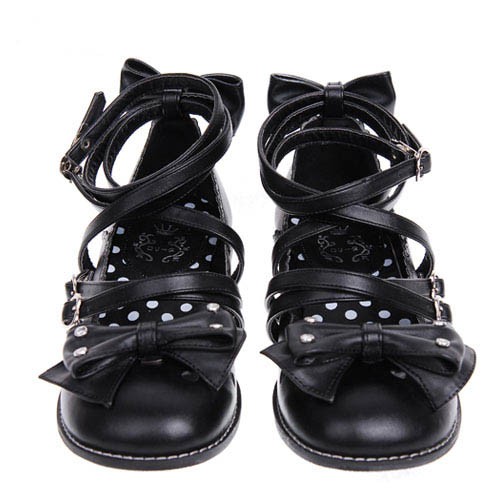Noir 1.0″talon haut mignon Suede bout rond avec nœud et filles Chaussures Lolita
