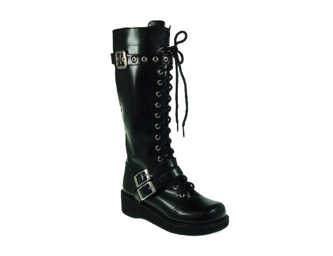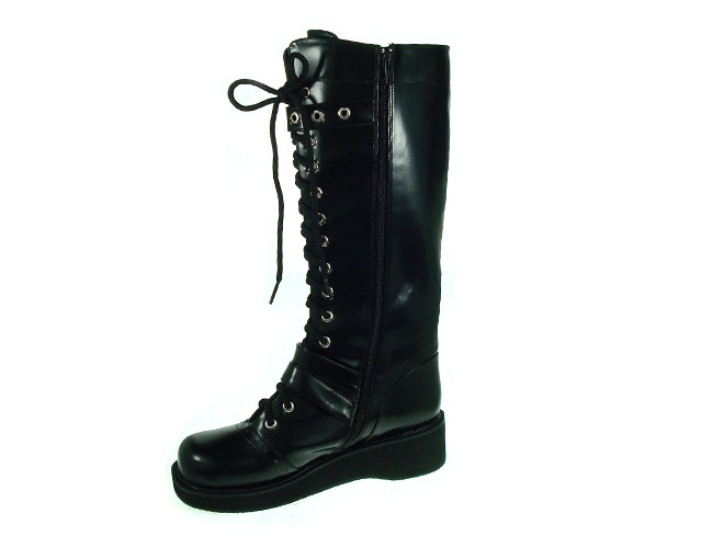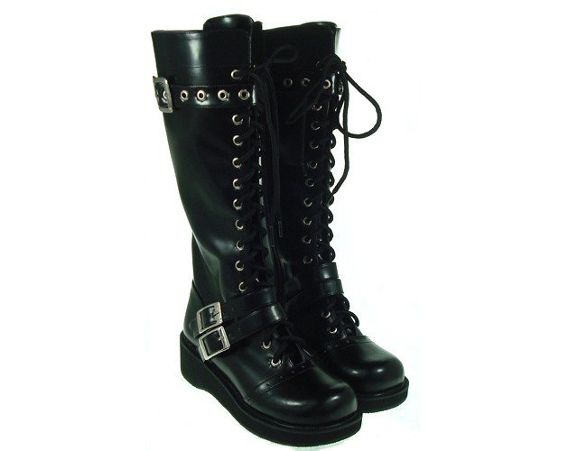 Noir 1.2″talon haut mignon Suede bout rond lanières croisées Plateforme Filles Bottes Lolita