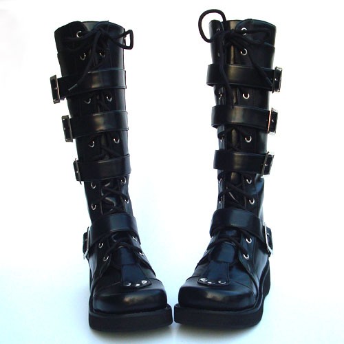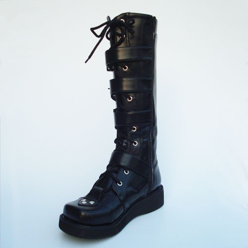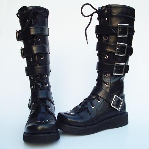 Noir 1.2″Talon haut Romatic synthétique point cuir Toe Cross bretelles plate Filles Bottes Lolita
