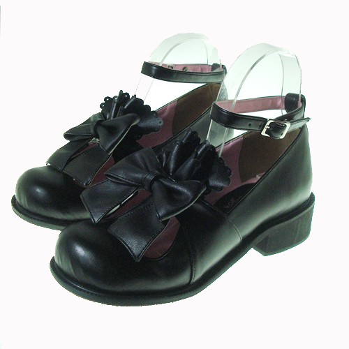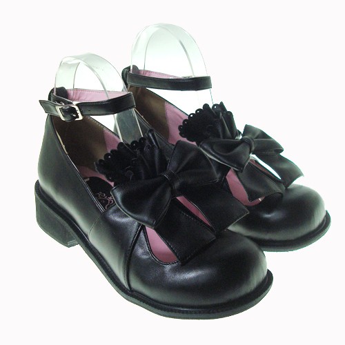 Home Lolita Lolita Footwear Noir 1.4″ heel mignon en cuir verni bout rond Bow Décoration Plate-forme Lady Lolita LF00106