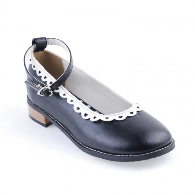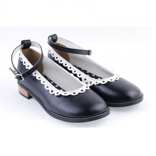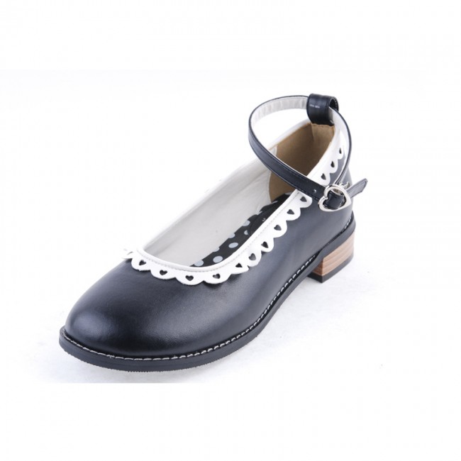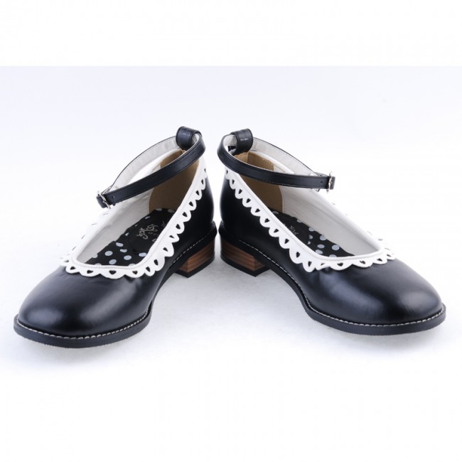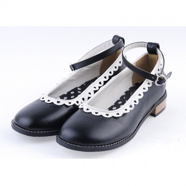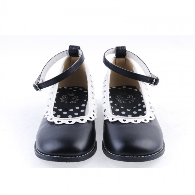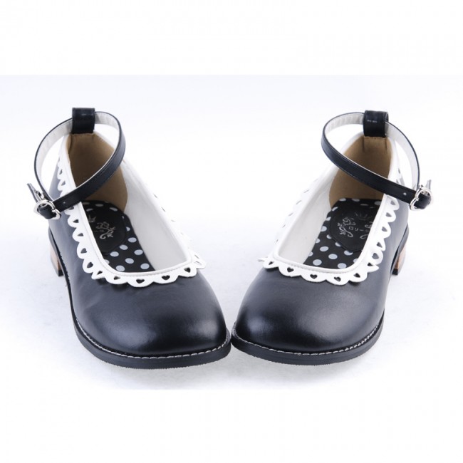 Noir 1″talon haut Belle ronde polyuréthane Toe cheville bretelles à pois motif semelle plateforme filles Chaussures Lolita