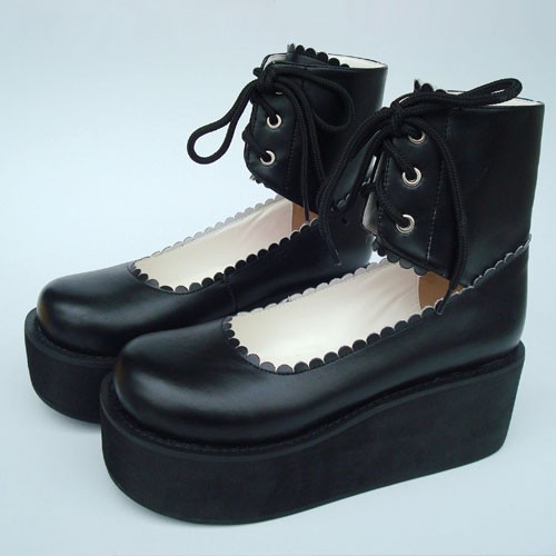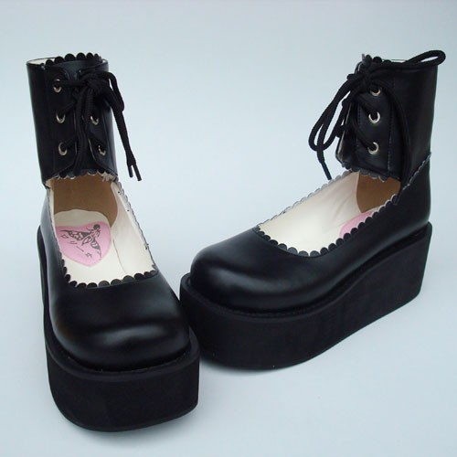 Noir 2.6″talon haut mignon PU bout rond lanières croisées Plateforme filles Chaussures Lolita