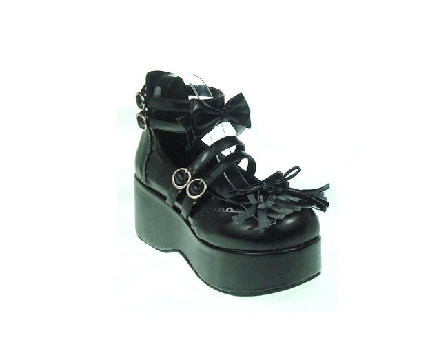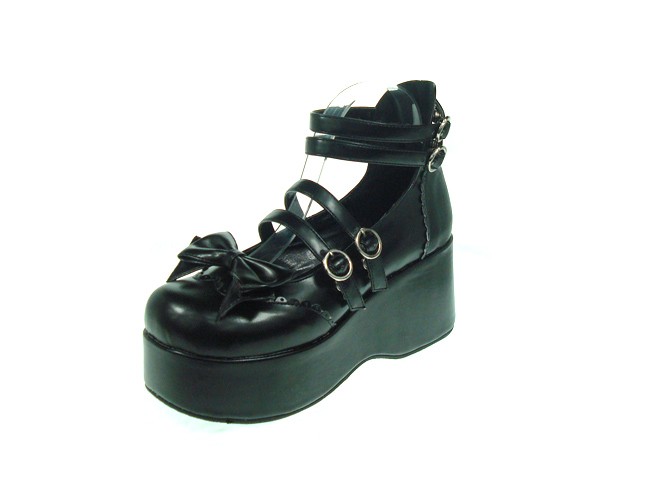 Noir 2,8″heel belle ronde cuir verni Toe Bow Décoration Plate-forme Lady Lolita
