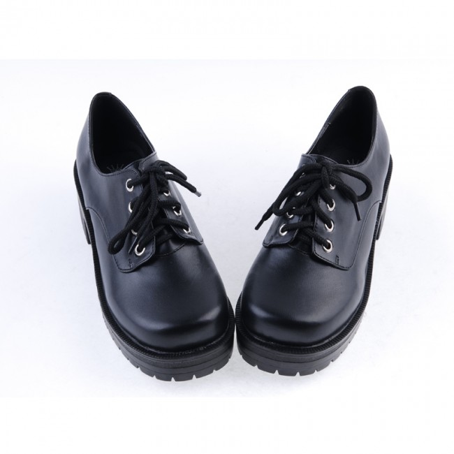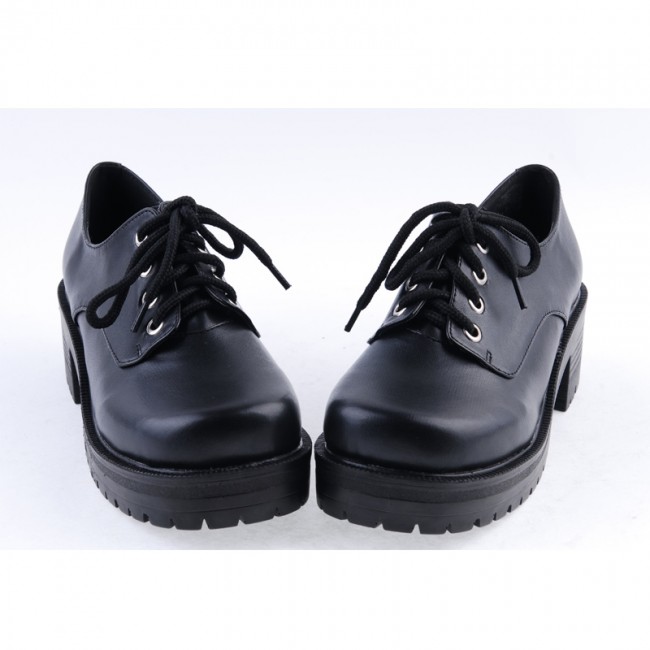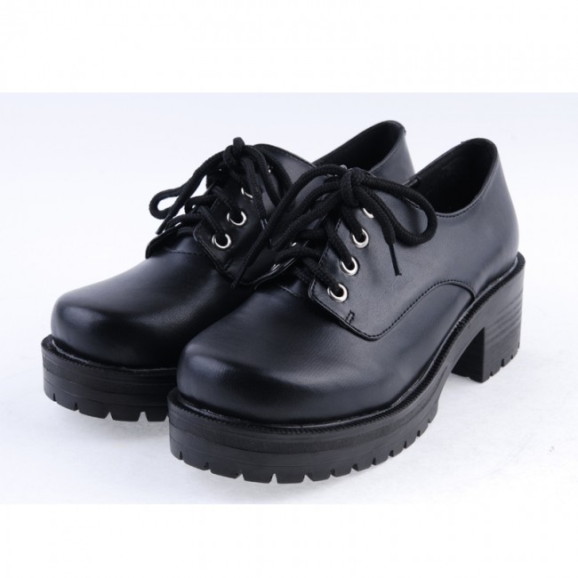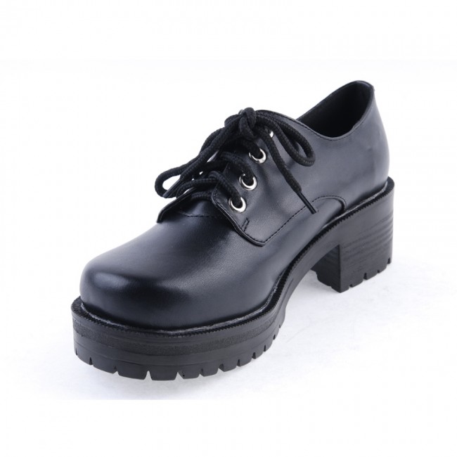 Noir 2″talon haut Belle militaire à bout rond en cuir synthétique style plate-forme filles Chaussures Lolita