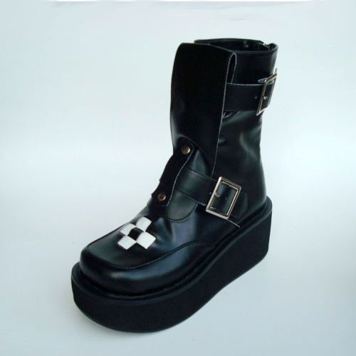 Home Lolita Lolita Footwear Noir 2,8″ heel ronde élégante en cuir verni Toe Stud Boucles plate-forme bottes filles Lolita LF00236