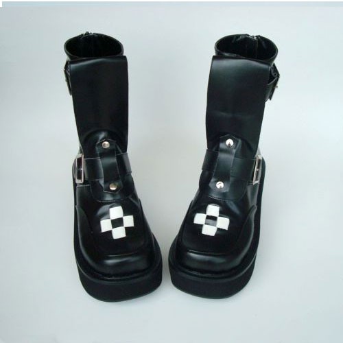 Soyez le premier à laisser votre avis sur “Noir 2,8″ heel ronde élégante en cuir verni Toe Stud Boucles plate-forme bottes filles Lolita LF00236”