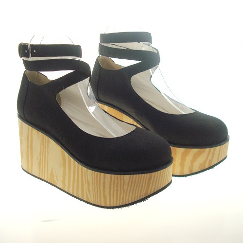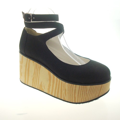Noir 3.1″Talon haut Belle Lint point Toe cheville bretelles plate-forme Filles Chaussures Lolita