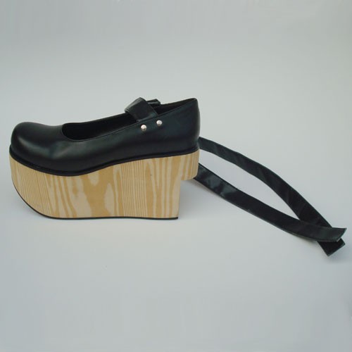 Home Lolita Lolita Footwear Noir 3,7″ heel Belle ronde PU Toe cheville bretelles Plateforme Femmes Lolita Chaussures LF00125