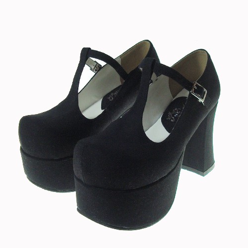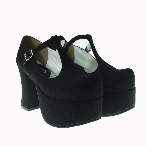 Noir 3,7″heel Glamorous Patent ronde en cuir Toe Cross bretelles plate-forme Lady Lolita