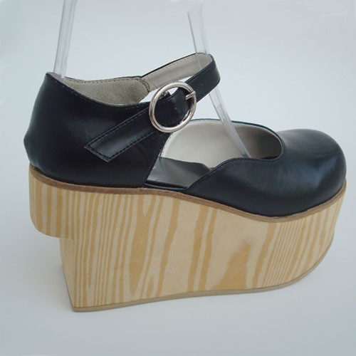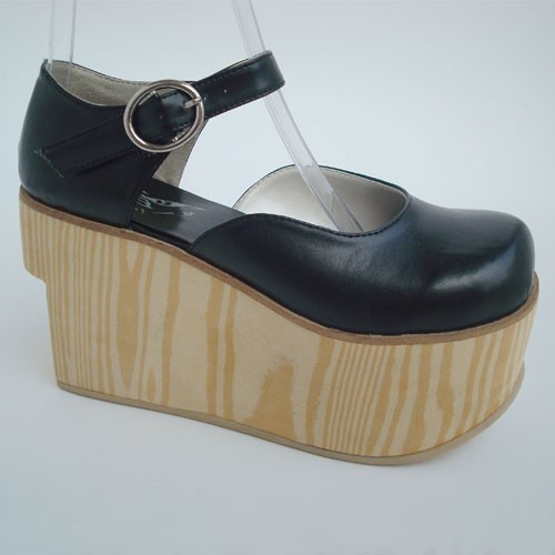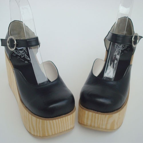 Noir 3,7″talon haut Adorable PU bout rond lanières croisées Plateforme filles Chaussures Lolita