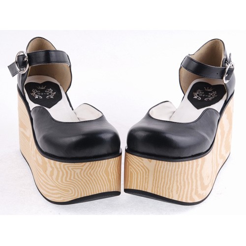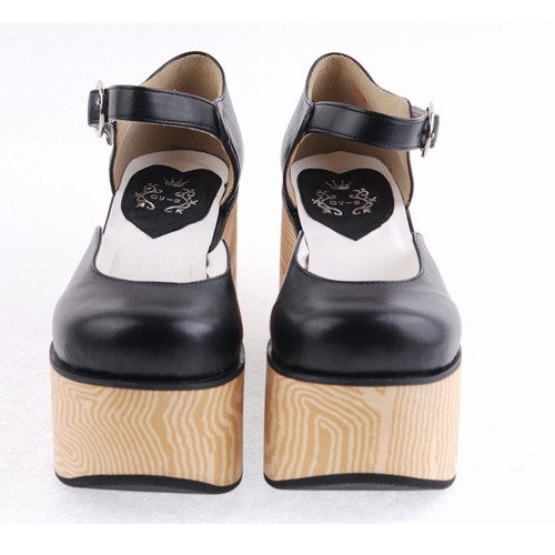Noir 3,7″talon haut Adorable Suede bout rond lanières croisées Plateforme filles Chaussures Lolita
