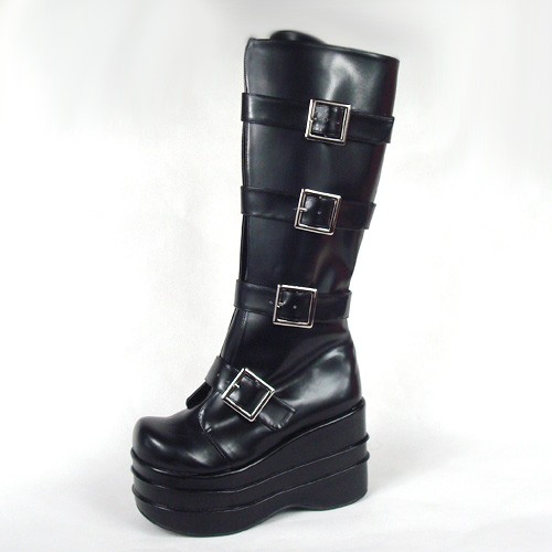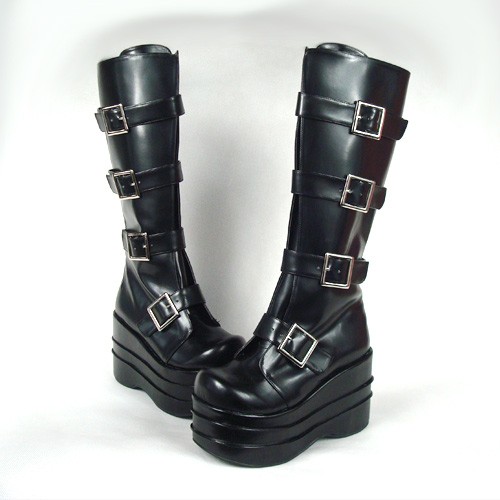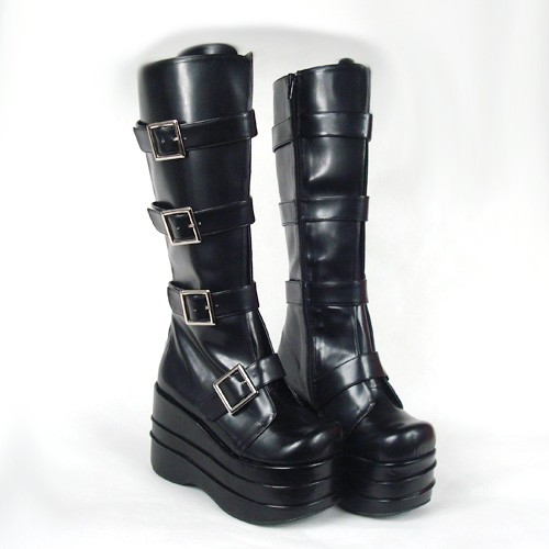 Noir 3,9″heel Belle PU bout rond Stud Boucles plate-forme Lady Lolita Bottes