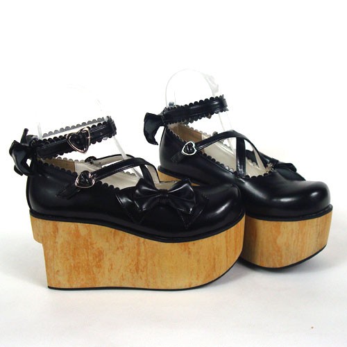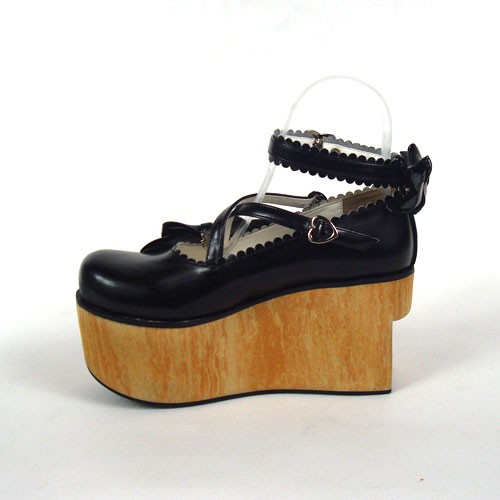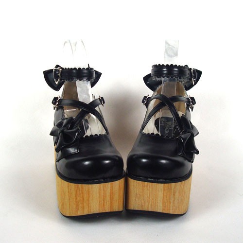 Noir 3,9 heel Mignon polyuréthane bout rond lanières croisées plate-forme Lady Lolita