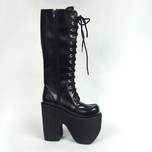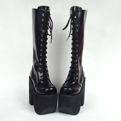 Noir 6.0″talon haut élégant PU point Toe Cross bretelles plate-forme Lady Lolita Bottes