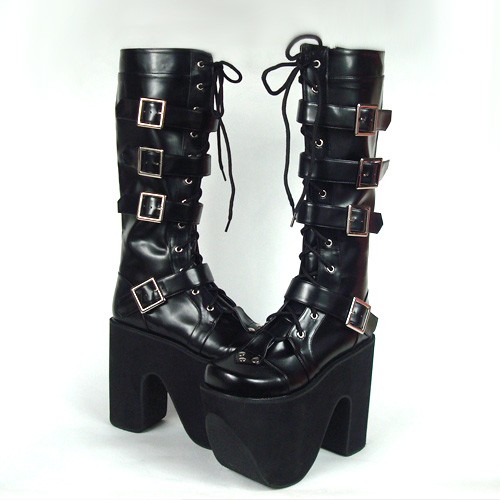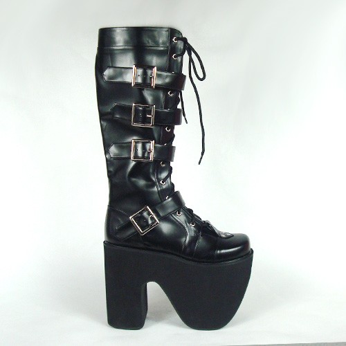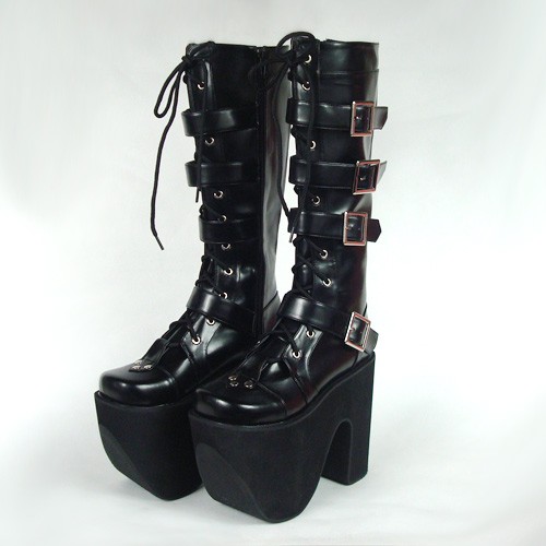 Noir 6.0″Talon haut Superbe polyuréthane point Toe Stud Boucles Plateforme Filles Bottes Lolita