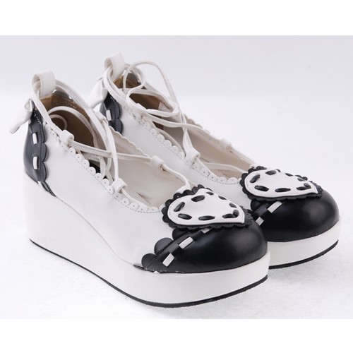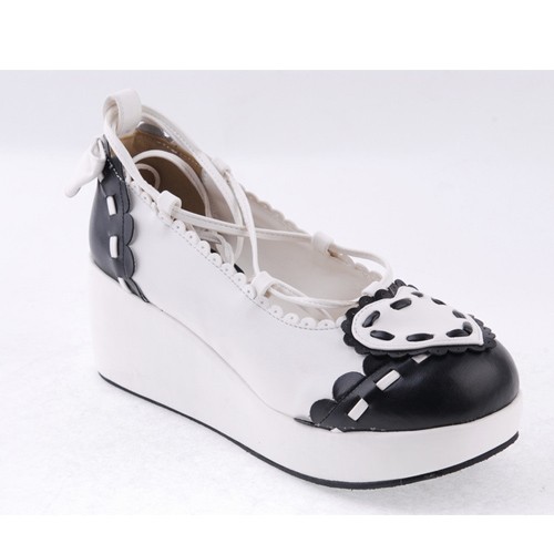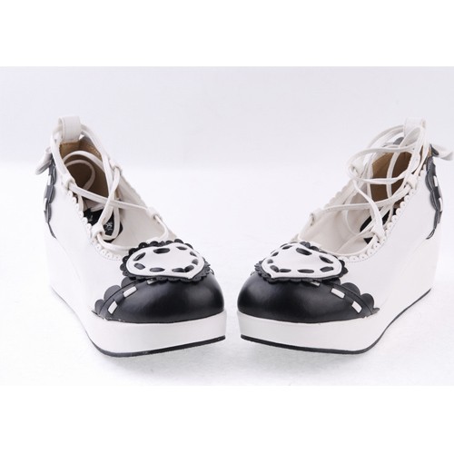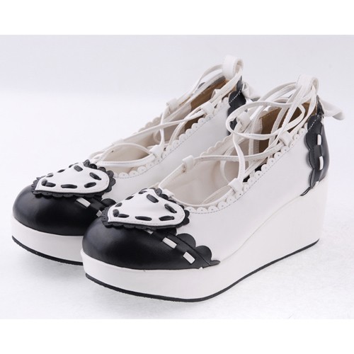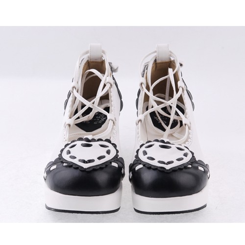 Noir et blanc 2.4″talon haut élégant en cuir verni festonnée Criss Cross Lace Tie Platform Chaussures Filles Lolita