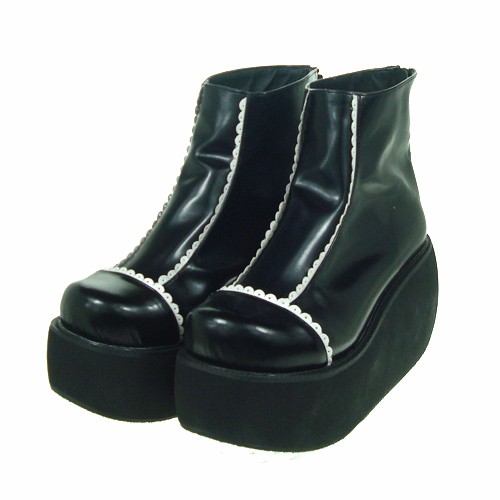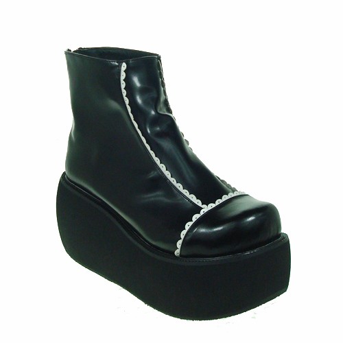 Noir et blanc 3.1″heel élégant brevet ronde en cuir Toe Gratin Plateforme Chaussures Filles Lolita