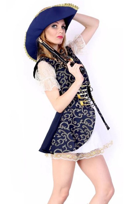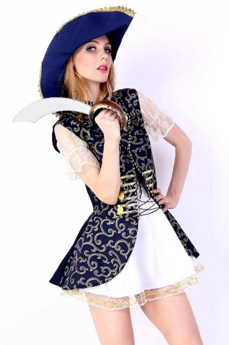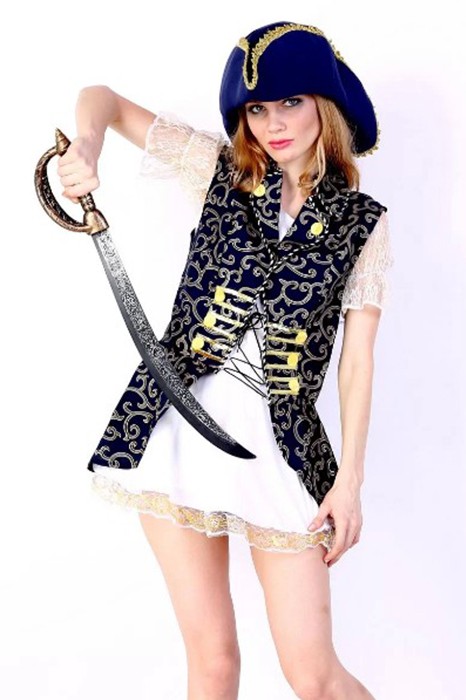 Caractéristiques: Ce costume est fait de film chaud Pirate des Caraïbes. Il comprend manteau blanc, un chapeau bleu et robe, se sentant comforable et doux.