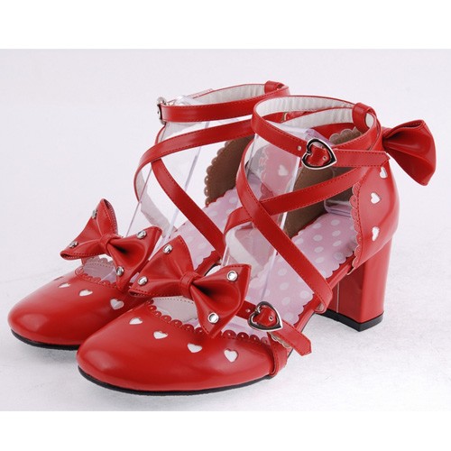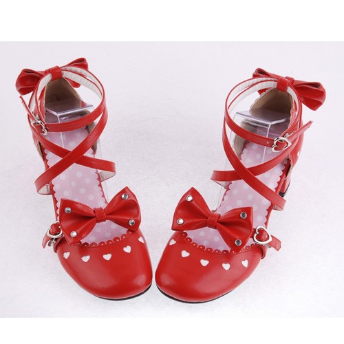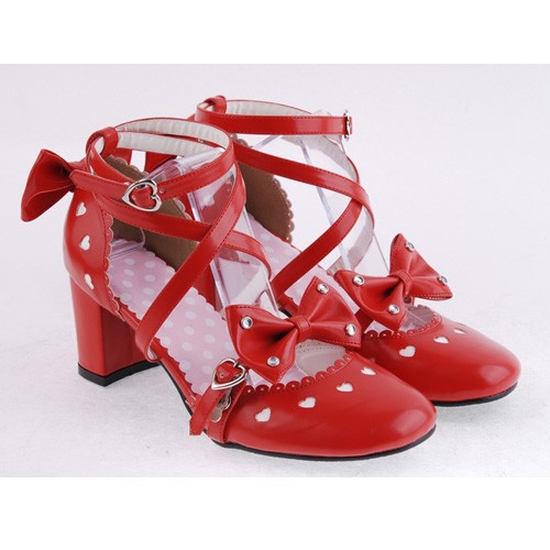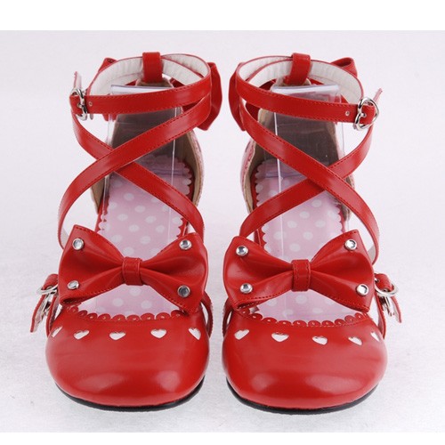 Red 2.5″talon haut classique Point de cuir synthétique Toe Cross Straps Plateforme Femmes Chaussures Lolita