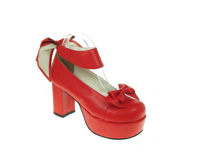 Red 3.1″heel Belle PU bout rond lanières croisées plateforme femmes Lolita