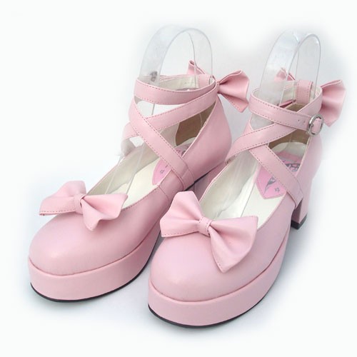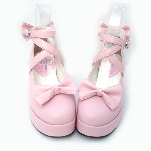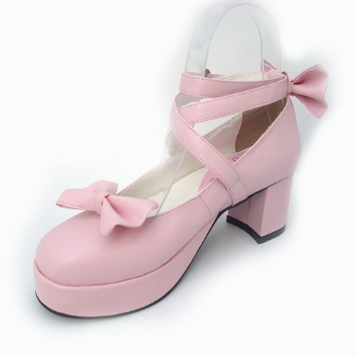 Rose 2.5″talon haut beau point polyuréthane Toe Cross Straps Plateforme Femmes Chaussures Lolita