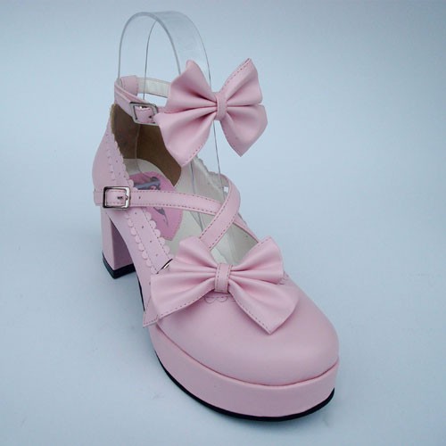 Rose 2.5″talon haut Glamorous Suede bout rond avec nœud et Lady Lolita