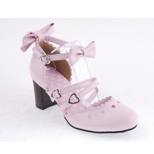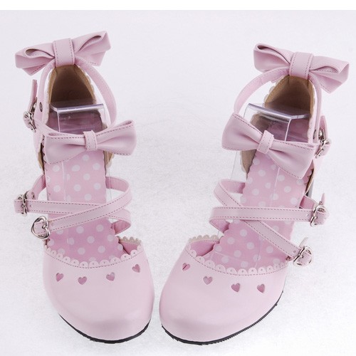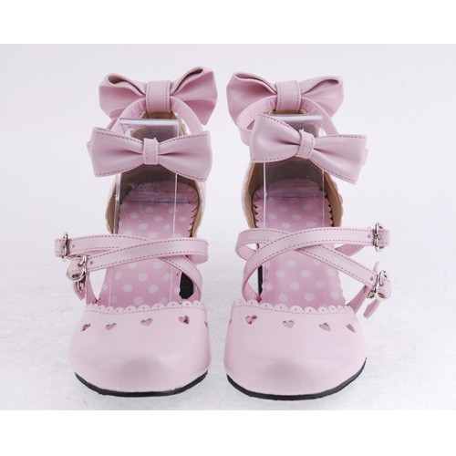 Rose 2.6″heel Beau point cuir verni Toe bowknot Plateforme Femmes Chaussures Lolita