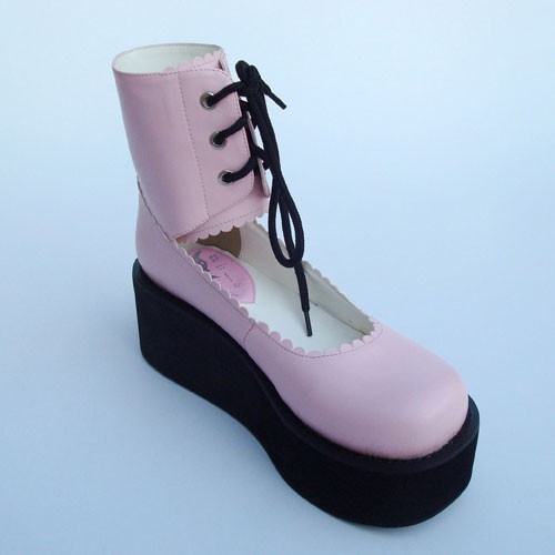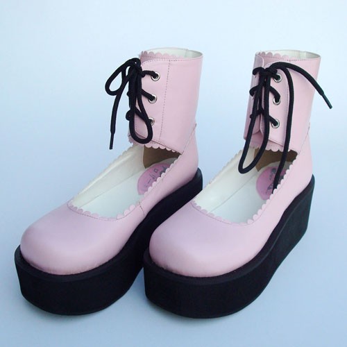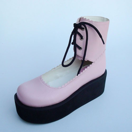 Rose 2.6″talon haut Adorable PU bout rond lanières croisées Plateforme filles Chaussures Lolita