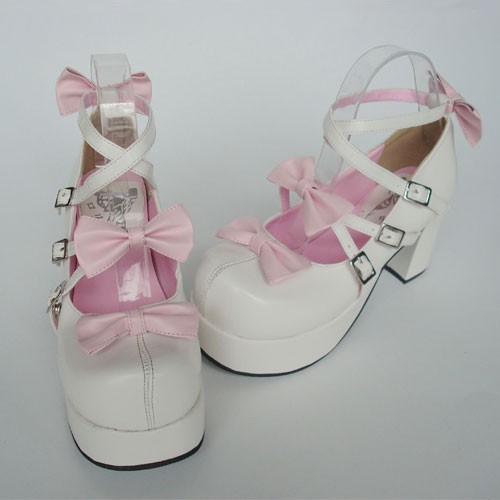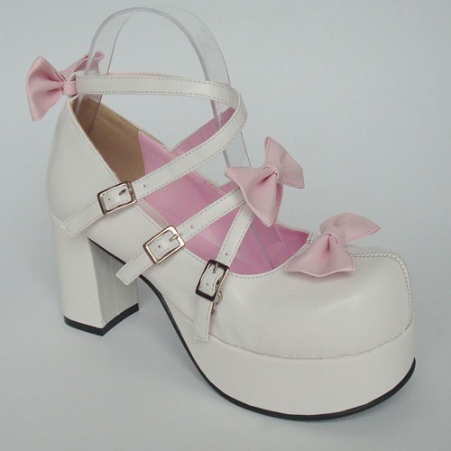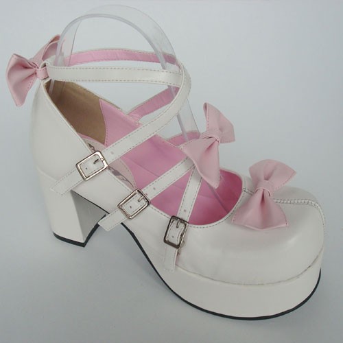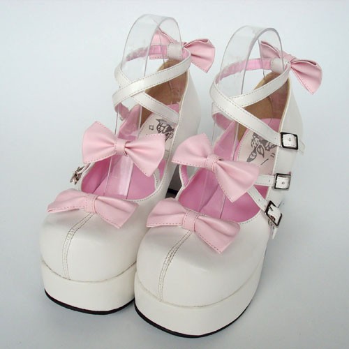 Rose et blanc 3.1″heel Superbe daim bout rond avec nœud et Lady Lolita