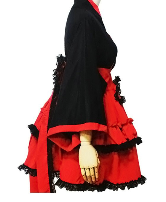 Rouge et Cosplay Coton Noir Femme de ménage Costume