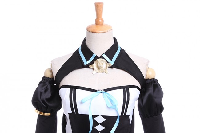Caractéristiques: Une robe noire et blanche avec des manches noires détachés, un décore arc bleu l’avant de son corsage, de sorte que la personnalité, ce costume vous fera sûrement une tache lumineuse dans la partie.