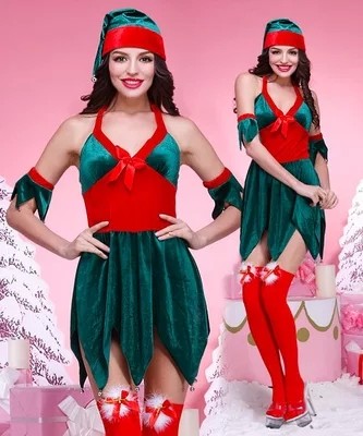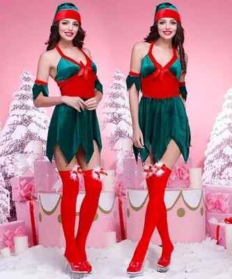 Caractéristiques: vert foncé Père Noël costumes de Noël pour les filles portant sur la fête de Noël, robe sexy.