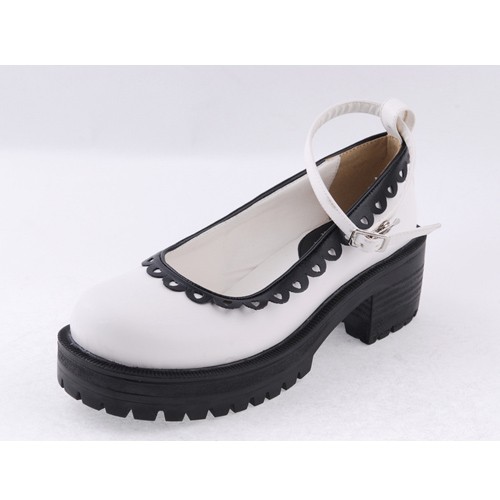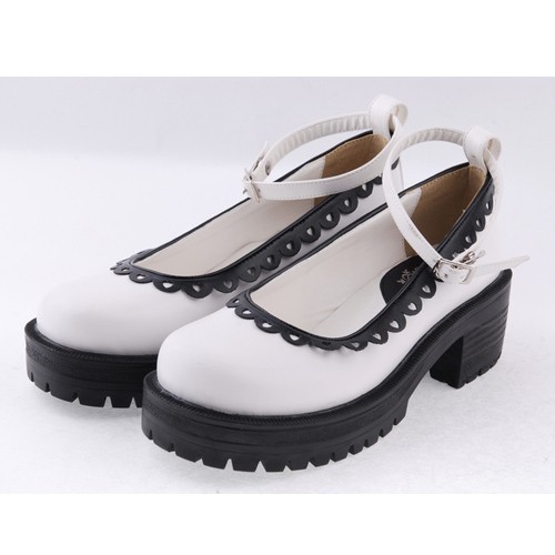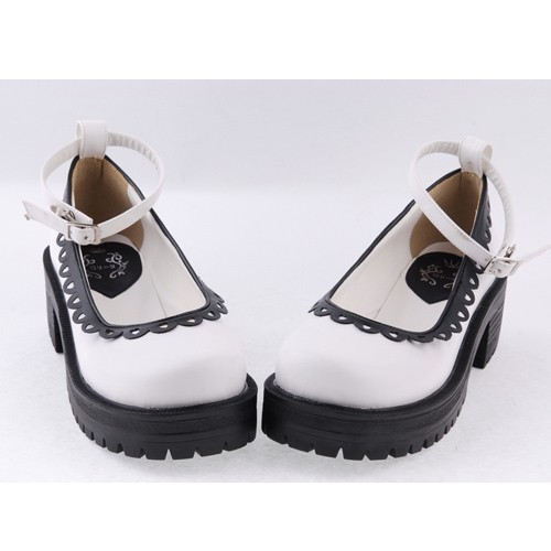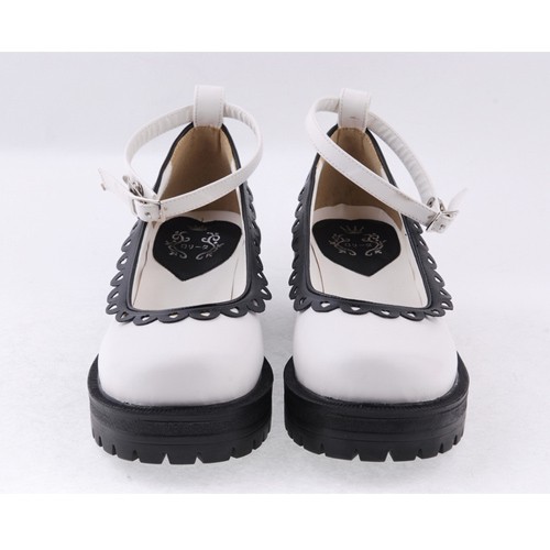 White2.2″talon haut en cuir synthétique ronde Glamorous Toe cheville sangles Plate-forme Filles Chaussures Lolita